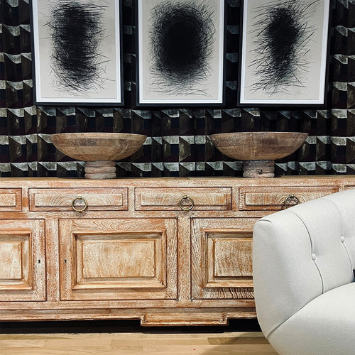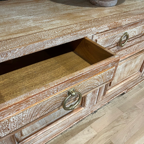 This spacious French sideboard from the 1950s is crafted in cerused oak, highlighting the natural grain with a soft, chalky finish.