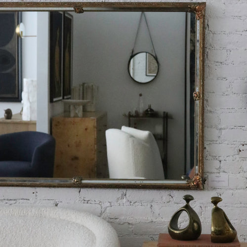 This gorgeous vintage French mirror is a testament to the timeless beauty of 19th-century French craftsmanship. With its delicately aged patina, gilded detailing, and classical proportions, it evokes the refinement of Louis Philippe and Napoleonic-era design, where mirrors were prized not only for their function but for their ability to enhance light and space within an interior.