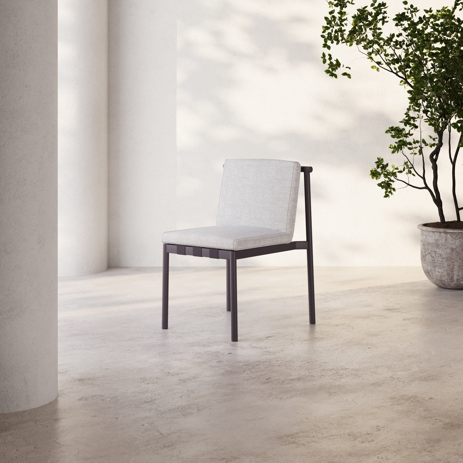 The Hudson Outdoor Collection by Lemieux et Cie brings sculptural modernism to the outdoors with an unexpected mix of materials. Luxurious faux all-weather leather arms, Italian strapping, and contoured aluminum frames create an airy, architectural profile that’s both refined and durable. Thoughtfully engineered with ergonomic comfort, each piece is paired with custom cushions to offer elevated comfort while dining and timeless style in any outdoor setting.
