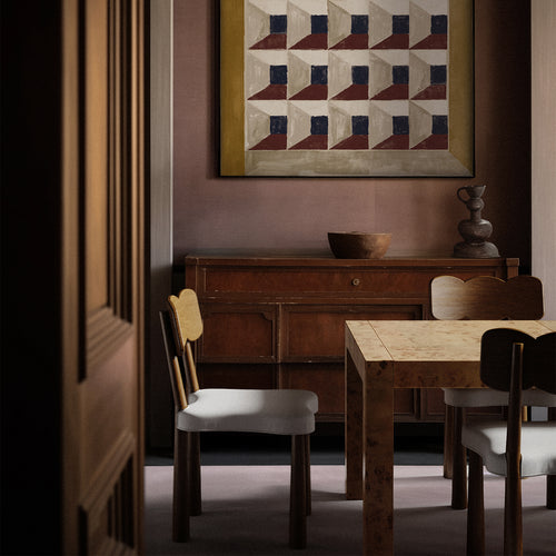Classic Parsons proportions, as developed by designer Jean-Michel Frank, lend a beautiful balance and timeless quality to this extension dining table made of natural Mappa burl wood. Leaves extend the table’s length to suit larger rooms or special occasions.