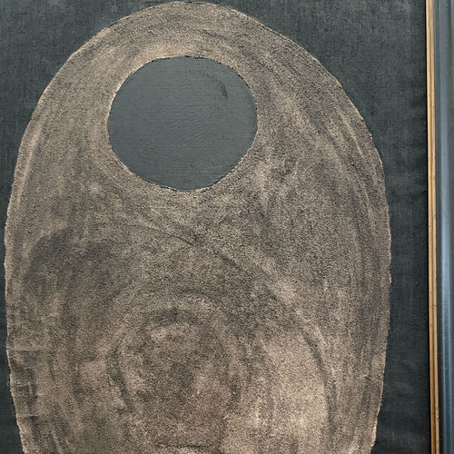 This stunning original work by Pierre Emmanuel Martin, exemplifies his mastery of form, texture, and monochromatic depth, drawing inspiration from the organic abstraction and modernist purity of postwar European art. Martin, known for his bold yet meditative compositions, explores the relationship between negative space and gestural mark-making, evoking the influences of Hans Arp, Pierre Soulages, and modernist lithography.