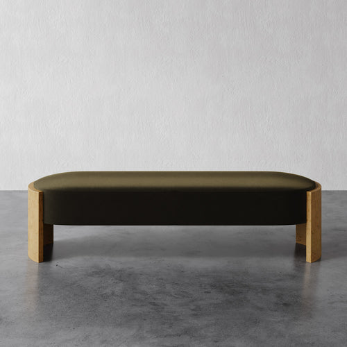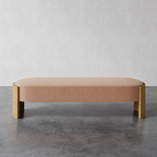 The Benoit Bench features a versatile curved shape, perfect for additional seating in an open-plan living room or as a centerpiece in a hallway. Its gorgeous curved Maple burl legs hug the deep bench seat, which is offered in a variety of luxe fabric options. This bench seamlessly combines functionality with luxury design, making it a standout addition to any home decor. Ideal for enhancing both modern and traditional spaces, the Benoit Bench offers both comfort and a refined aesthetic to your interior.