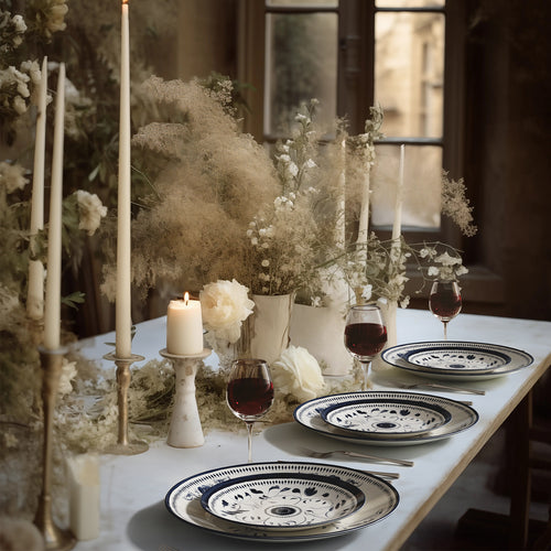 The "Bruges" dinner set draws its inspiration from the timeless beauty of Belgian design and the iconic Dutch Delftware, reinterpreted through a modern lens to enhance contemporary luxury dining. Its elegant hand painted blue and white floral motifs evoke the artisanal craftsmanship of classic European ceramics, while the refined detailing ensures a formal yet versatile aesthetic perfect for any occasion. Whether used for an intimate dinner or grand entertaining, the set marries traditional European artistry with modern decoration, offering both functionality and beauty. The minimal shapes and delicate patterns give each piece an heirloom quality, ideal for elevating any dining experience.