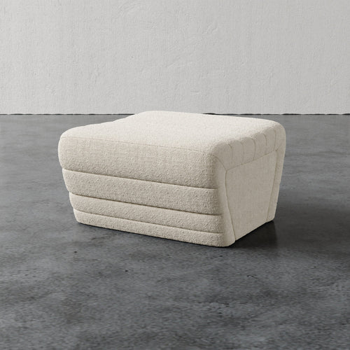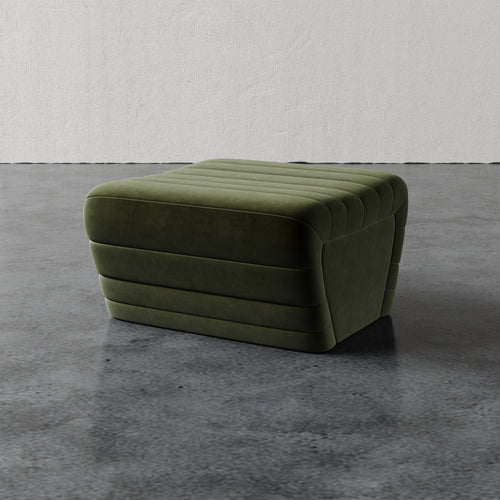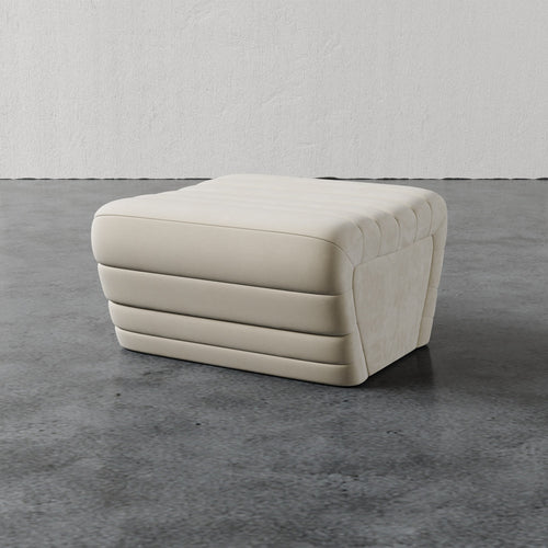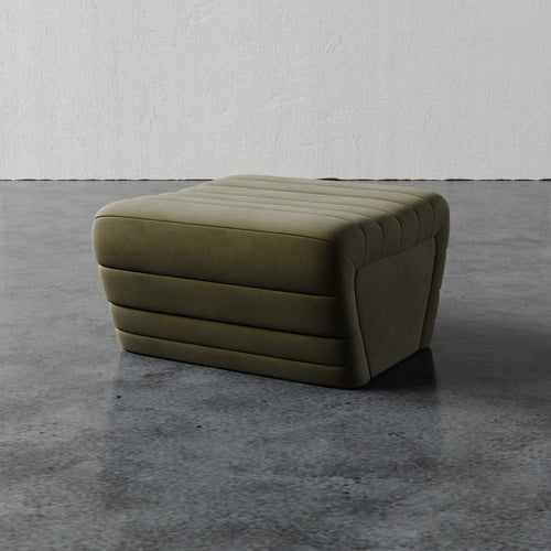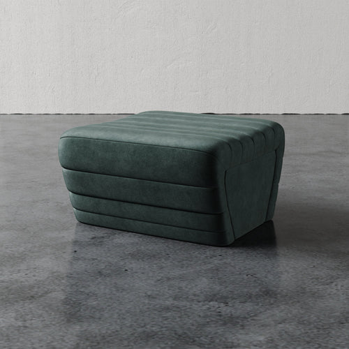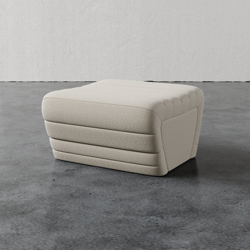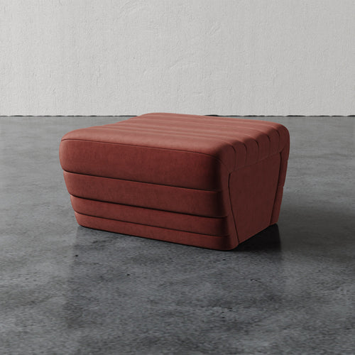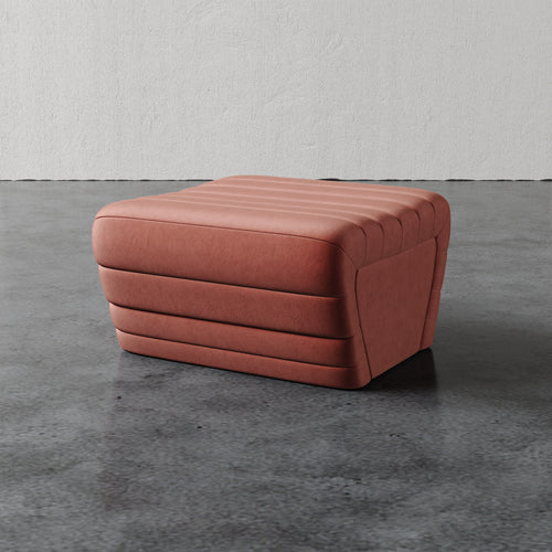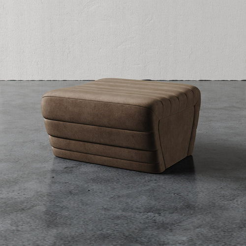 The Brunoy ottoman is inspired by midcentury Swiss design, reworked with a modernist perspective and upholstered with cleanly tailored horizontal channeling. Pair with the Brunoy lounge chair for the ultimate in comfort. Available in both Leather and Fabrics.