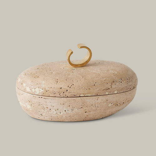 Caillou Lidded Pot (Travertine)