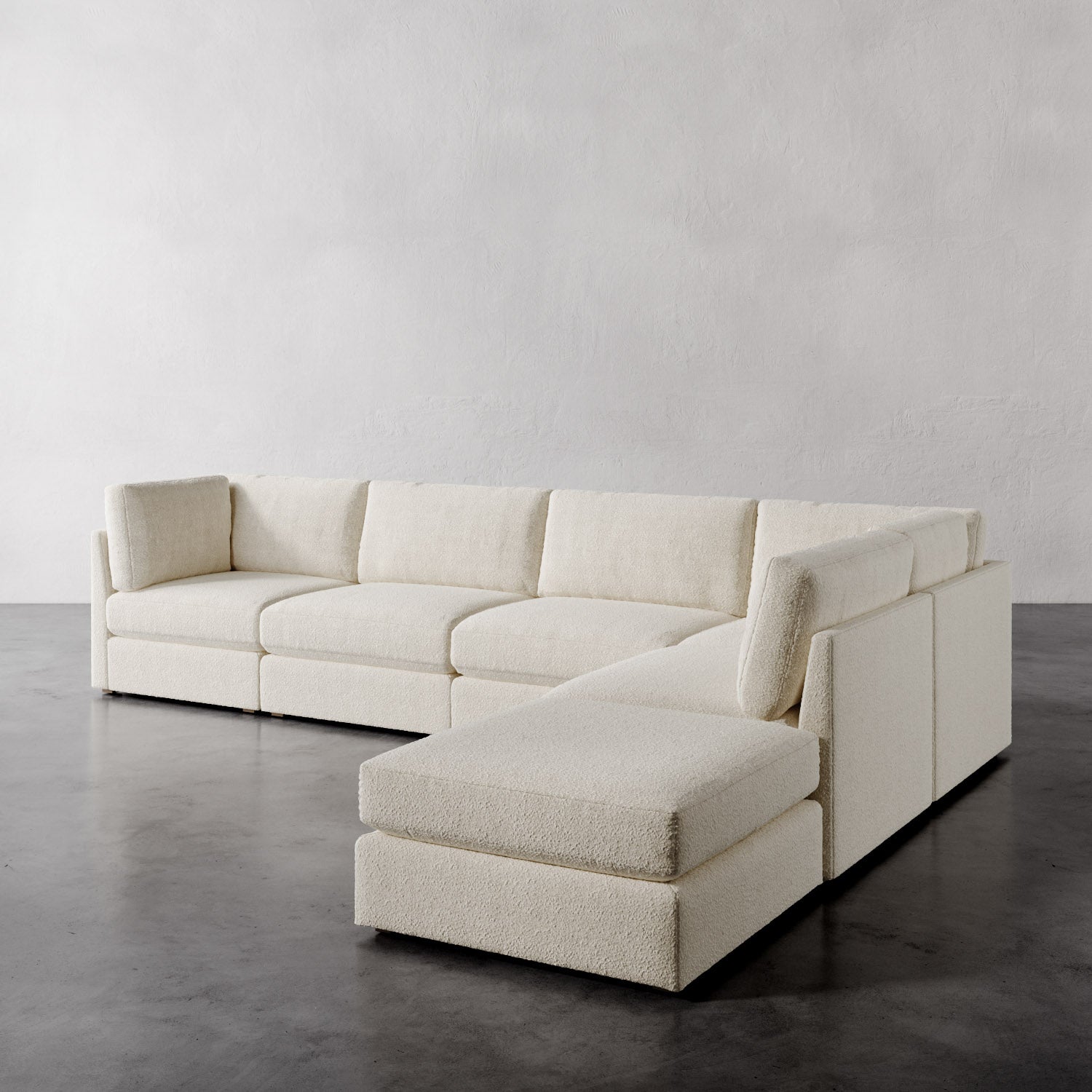 The Chanaux Collection draws on the sculptural clarity of mid-century master Milo Baughman, offering a balanced interplay of soft containment. Modular shapes fill a rigorous frame, forming an elevated sensual experience. Comfort, composed.