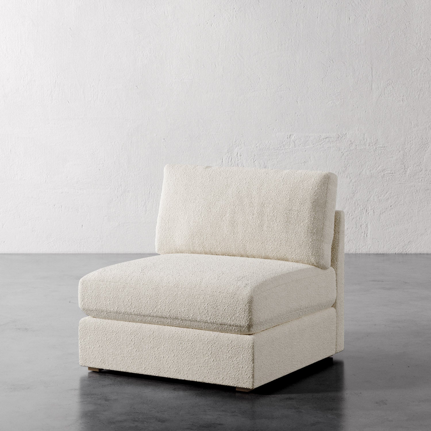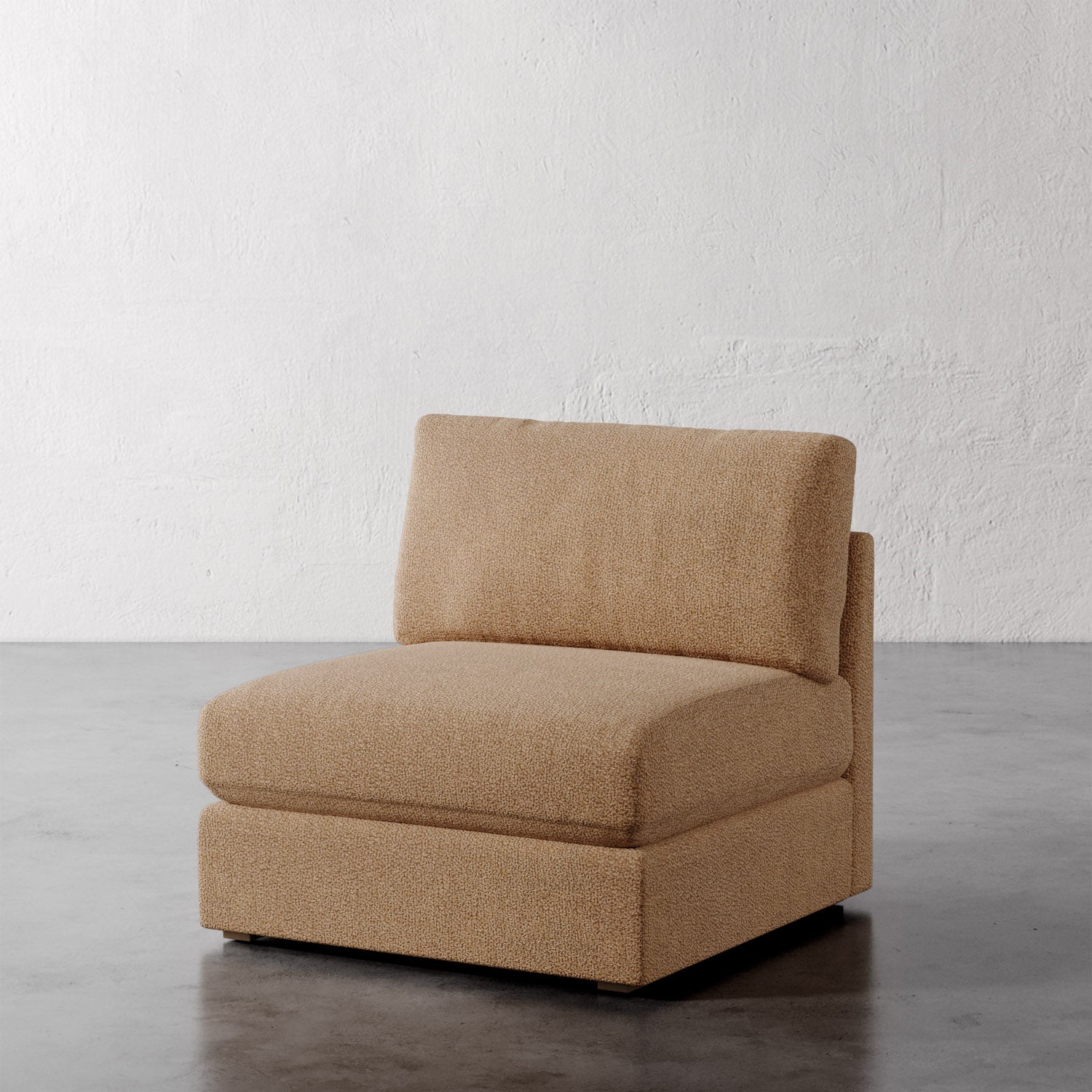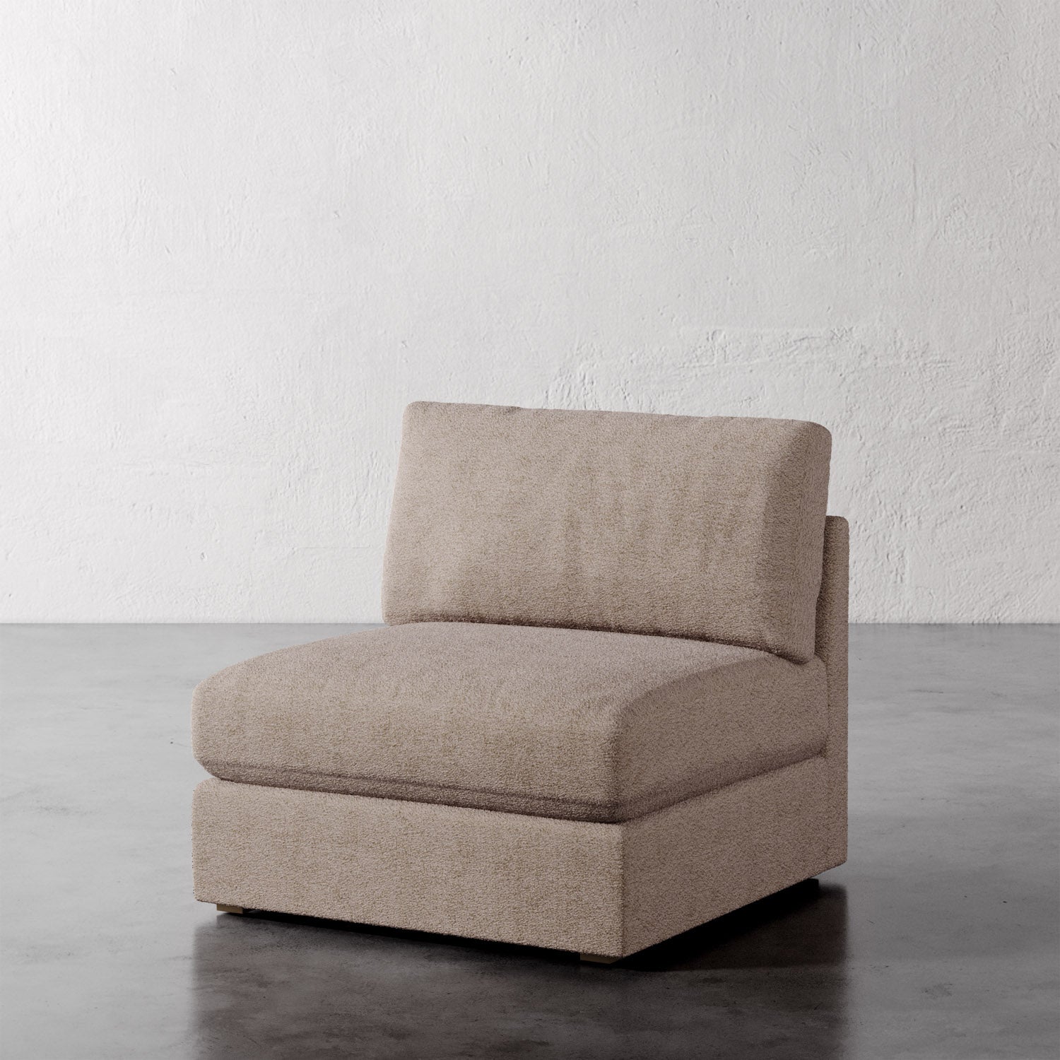 Beige armchair against a plain white wallLemieux Et Cie Chanaux Armless Chair
