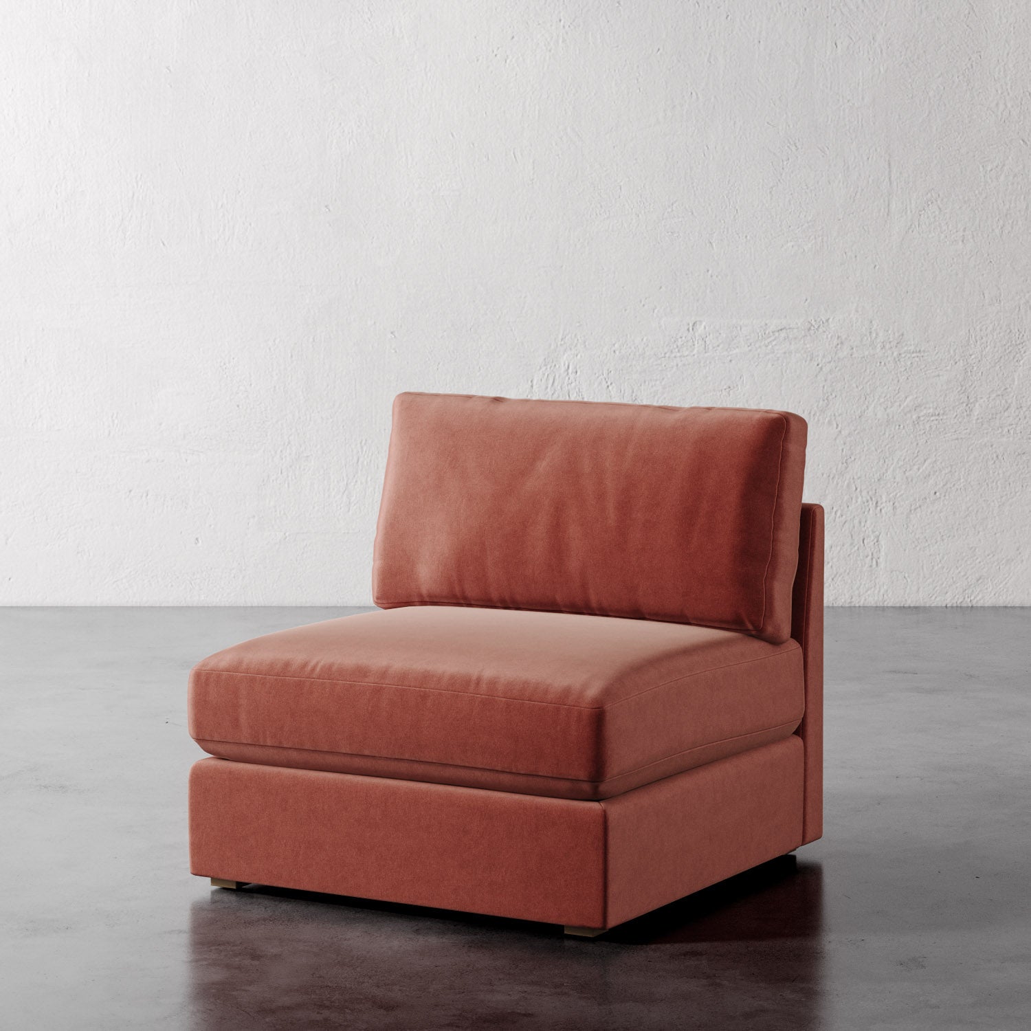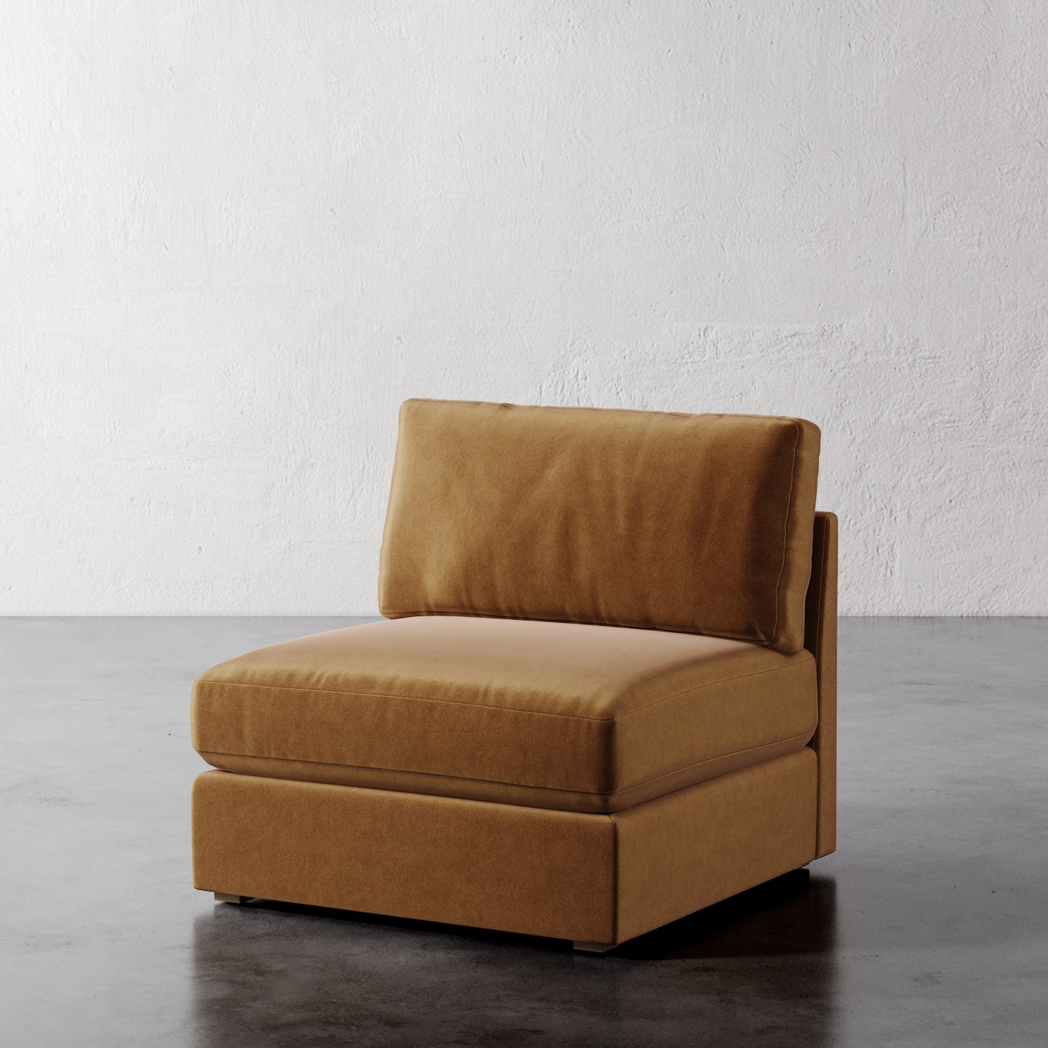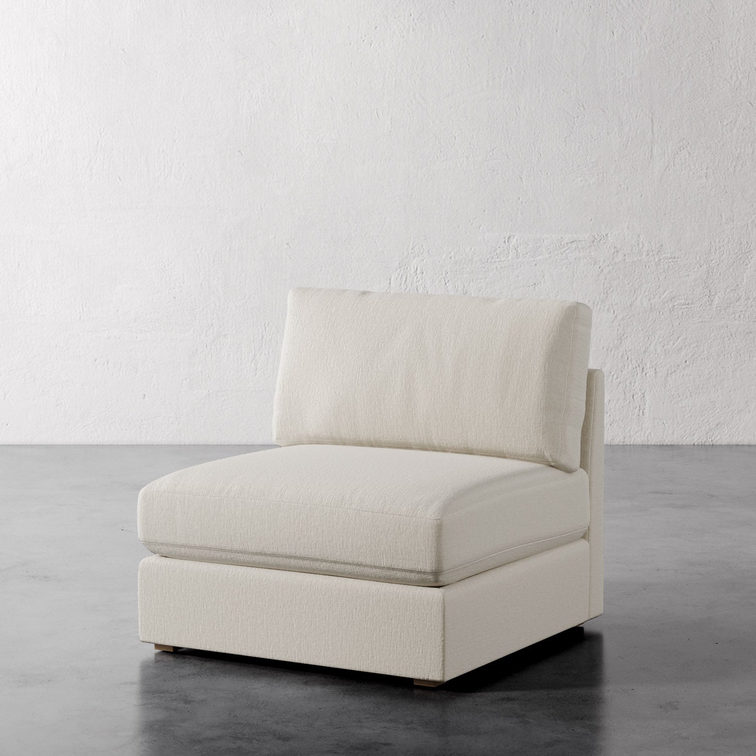 Beige armchair against a plain white wallLemieux Et Cie Chanaux Armless Chair