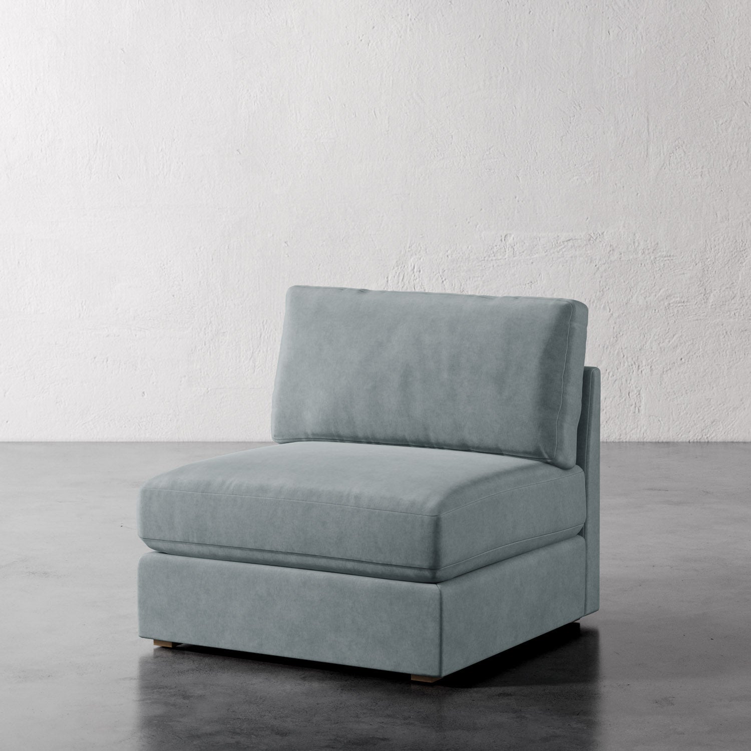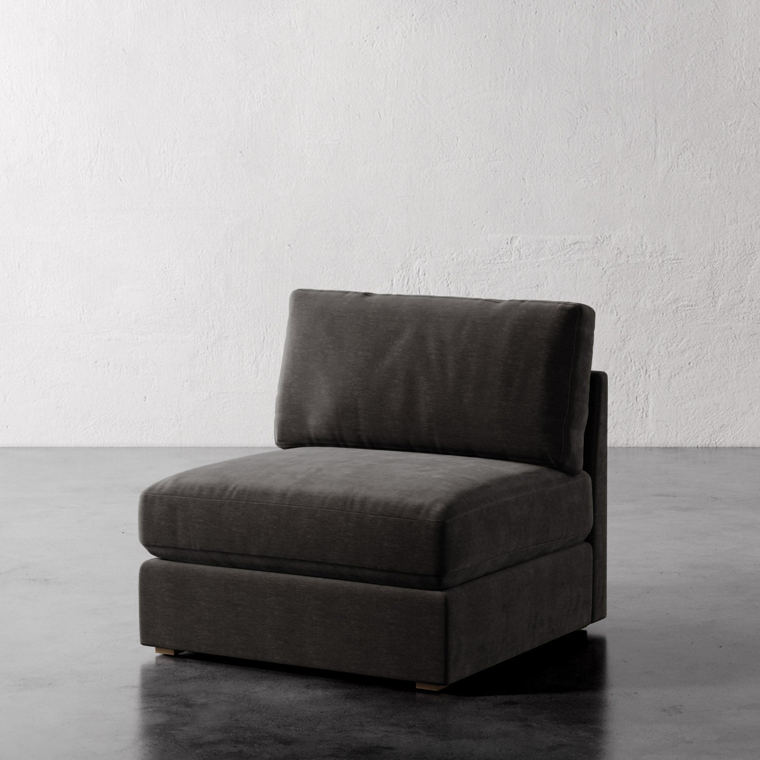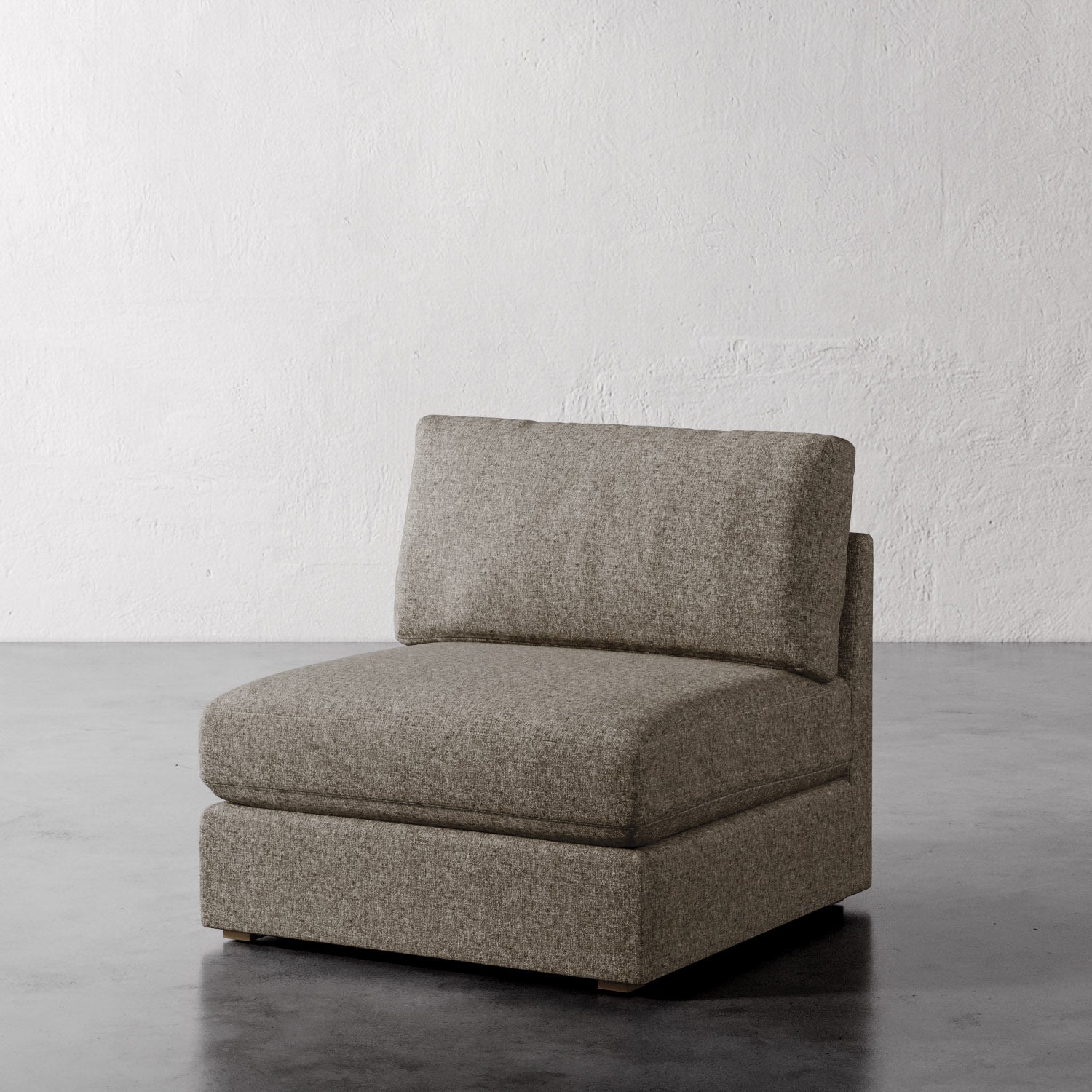 Gray sofa chair on a white backgroundLemieux Et Cie Chanaux Armless Chair