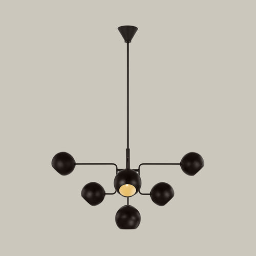 The Chaumont collection reinterprets the classic globe shape into multi-tiered designs inspired by both the mobiles of Calder and classic French mid-century forms. The multi-directional shades suggest movement while providing ample lighting in any space and a dramatic Aged Iron finish which will patina beautifully over time.