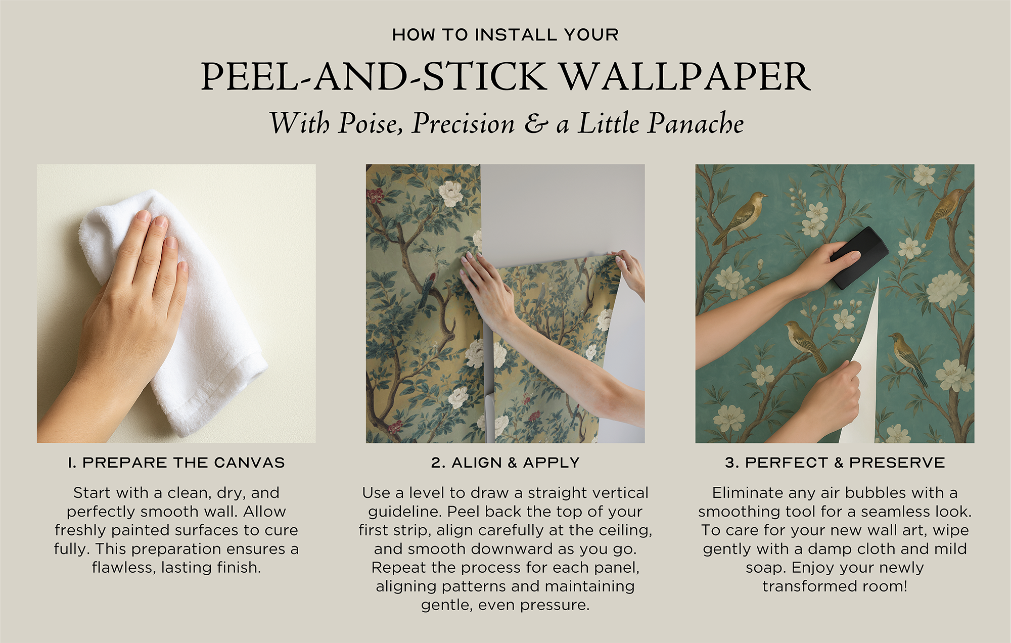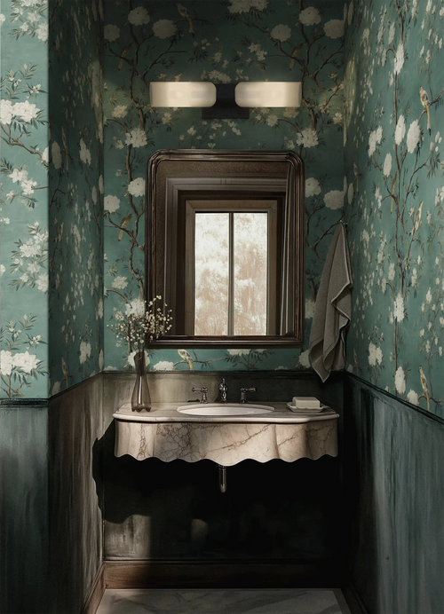 A classic reborn, Ciel Bleu captures the ethereal spirit of 18th-century blue-and-white chinoiserie with delicate branches, white blossoms, and songbirds on a soft celestial blue. Inspired by the panels that once adorned Versailles and English country houses, this blue chinoiserie wallpaper brings history’s most poetic garden indoors. This romantic wallpaper glows with quiet luxury.