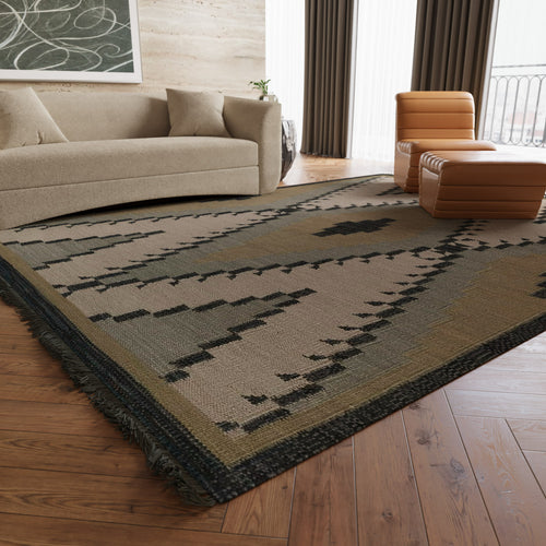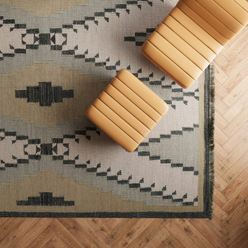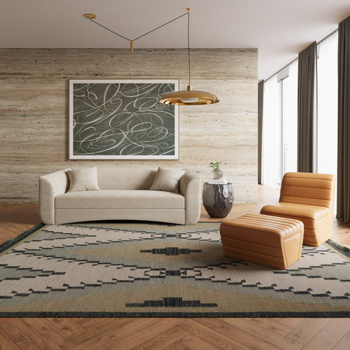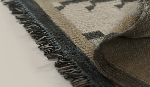 The Cluny Collection offers a mixture of influence from Southwest Native American and Indonesian textiles, utilizing traditional Ikat designs among other decorative tribal layouts. Hand-woven in wool fibers with rich leather accents and fringe detailing, these rugs honor historical techniques that take you back to another place and time. The muted and neutral colors that run throughout bring a unique, antique-like element to any space.