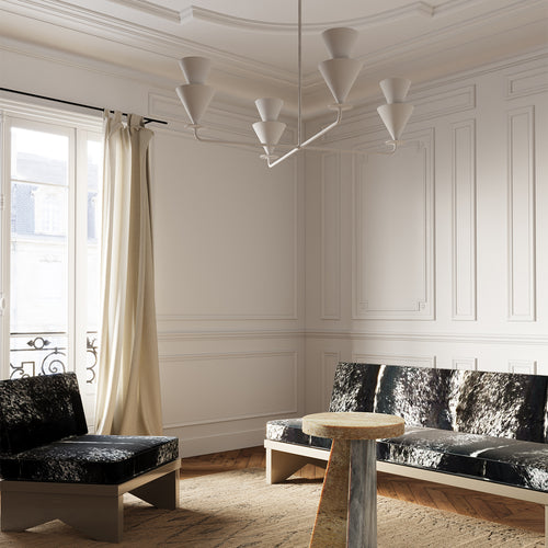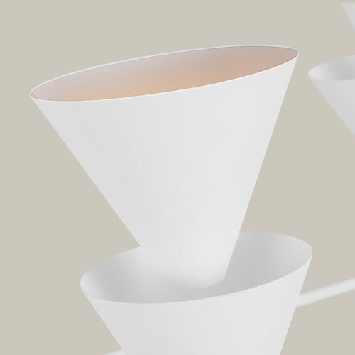 Featuring inverted cone shades in white cast plaster, the Cornet collection is designed to build off of the continuum of history. Specifically referencing 1920's - 40's European design influences, everything from art deco through to Italian midcentury. The minimal sculptural forms in each design bring a sense of drama to any space.
