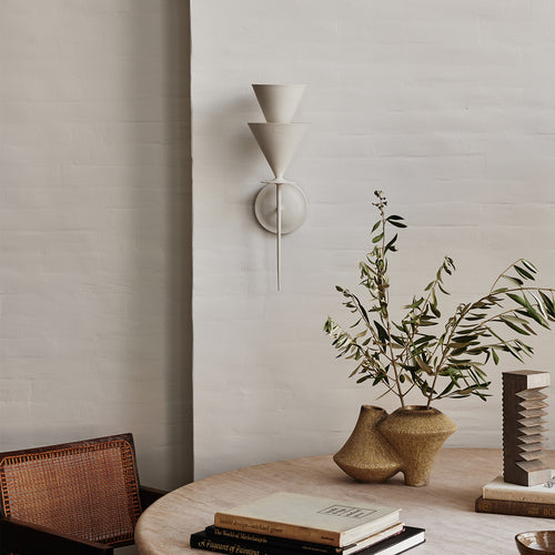 Featuring inverted cone shades in white cast plaster, the Cornet collection is designed to build off of the continuum of history. Specifically referencing 1920's - 40's European design influences, everything from art deco through to Italian midcentury. The minimal sculptural forms in each design bring a sense of drama to any space.