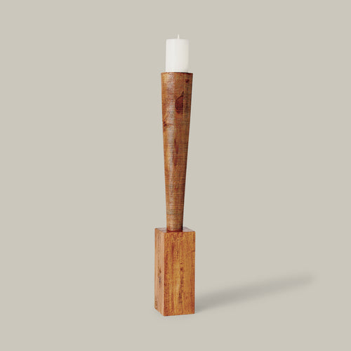These Floor Pillar Candleholders are inspired by expressionist sculptors and conceived to be layered and shown in groupings. Artisanal craftsmanship and the evidence of handwork give this piece authenticity and depth.