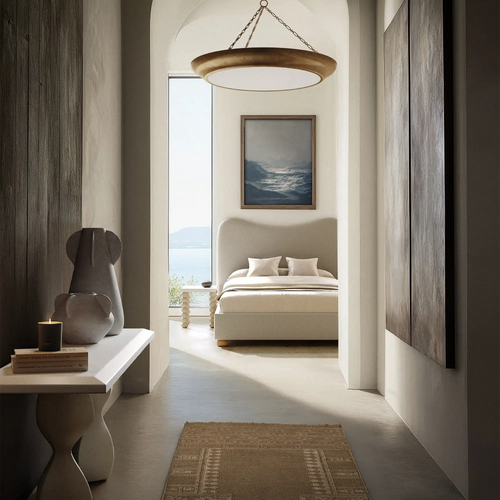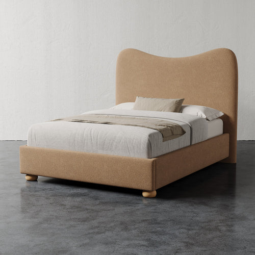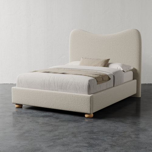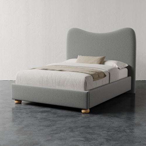 With its softly contoured silhouette and signature dip in the headboard, the Danielle Bed brings sculptural elegance to the bedroom. Upholstered by hand and grounded by rounded wooden legs, its form recalls the organic design sensibilities of Kagan, Royère, and Noguchi. Both modern and timeless, it offers a serene and sophisticated foundation for any bedroom.