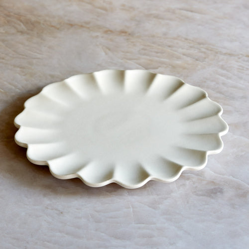 The "Dhalia" dinner set is a modern homage to the rich history of French scalloped dinnerware, famously commissioned by the Kings of France in the 18th and 19th centuries. These regal plates were originally designed to add opulence to royal banquets, their gorgeous curves inspired by the beauty of nature. The "Dhalia" collection, available in white, camel, and blue, carries forward this legacy of luxury through its beautifully scalloped edges, reinterpreting the traditional aesthetic for contemporary entertaining. Each piece has the European refinement of classic French craftsmanship, balanced with modern sophistication, making it perfect for both everyday dining and formal occasions.