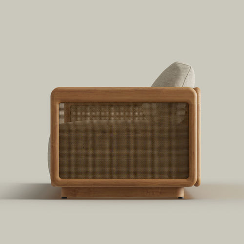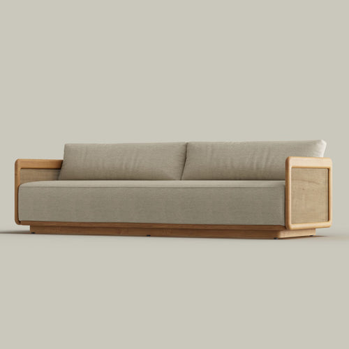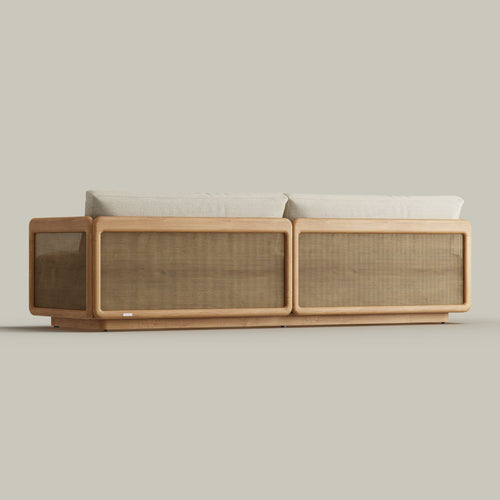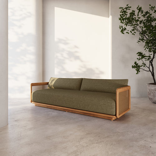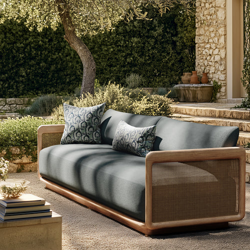 Featuring distinctive woven panels set within a solid teak frame, the Dock Sofa creates a striking contrast of texture and warmth. Designed for both style and durability, this Sofa offers deep, inviting comfort, perfect for relaxed outdoor living. Crafted to elevate any setting, this piece seamlessly blends modern elegance with lasting craftsmanship. Pair with the Dock Lounge Chairs for the ultimate outdoor living oasis.