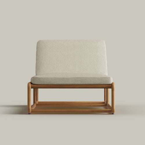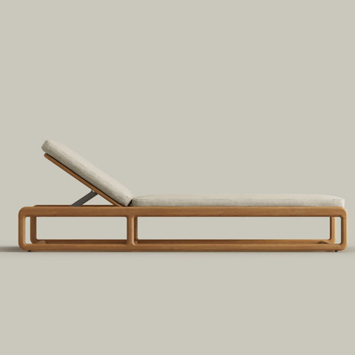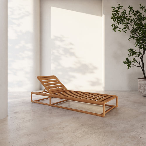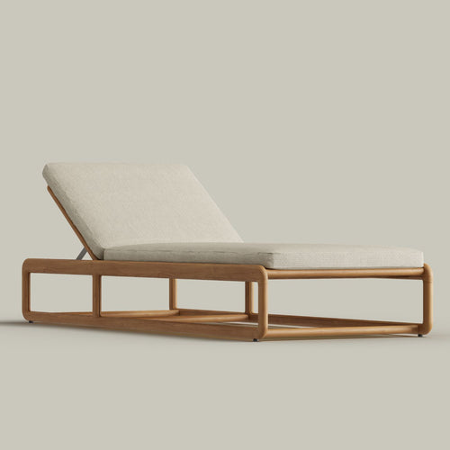 The Dock Chaise Lounge is designed for effortless outdoor relaxation, featuring a sleek teak frame with sculptural lines and an optional cushion. Its low-profile silhouette and open framework create an airy, modern aesthetic, while the reclining backrest allows for customizable comfort. Crafted for durability and style, the Dock Chaise is the perfect addition to poolside lounging or sunlit patios, offering a seamless blend of function and refined design.