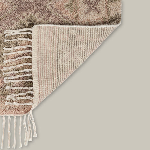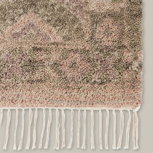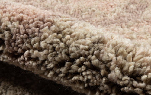 Traditional Moroccan rag rugs inspire the Doukkala Collection. Hand knotted out of wool, the pile is hand-shorn to create an irregularity in the look, forming a thick, almost cloud-like texture underfoot. The loosest interpretations of a Moroccan rug, the saturated colors, like a dusty mauve or rich oxblood, feel sophisticated and aged.