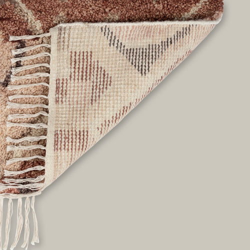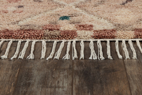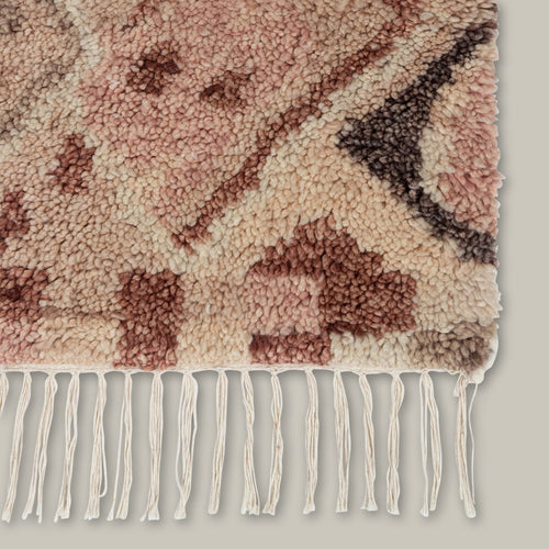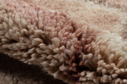 Traditional Moroccan rag rugs inspire the Doukkala Collection. Hand knotted out of wool, the pile is hand-shorn to create an irregularity in the look, forming a thick, almost cloud-like texture underfoot. The loosest interpretations of a Moroccan rug, the saturated colors, like a dusty mauve or rich oxblood, feel sophisticated and aged.