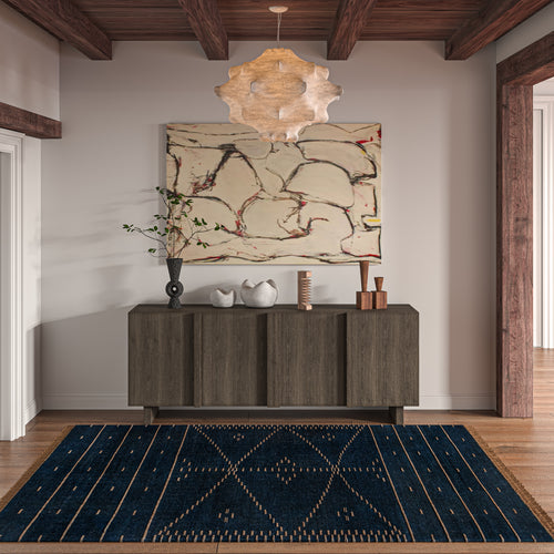 Inspired by everything from Shibori, Scandinavian flatweaves, and a myriad of other hand-dyed textiles, the Duar Collection has a rich sense of history in its patterns. Space dyed, you’ll see color undulation in each style, ranging from deep indigo to almost black. Each pattern, from micro dashes to broad sweeping stripes, creates a sense of fluidity and motion within the rug.