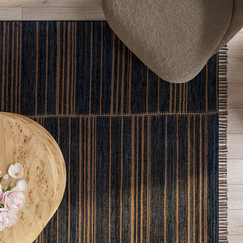 Inspired by everything from Shibori, Scandinavian flatweaves, and a myriad of other hand-dyed textiles, the Duar Collection has a rich sense of history in its patterns. Space dyed, you’ll see color undulation in each style, ranging from deep indigo to almost black. Each pattern, from micro dashes to broad sweeping stripes, creates a sense of fluidity and motion within the rug.