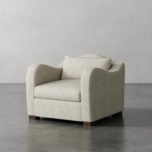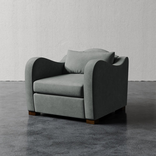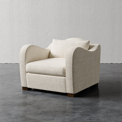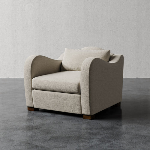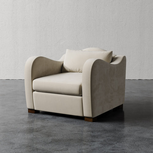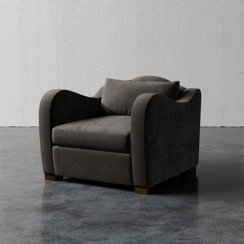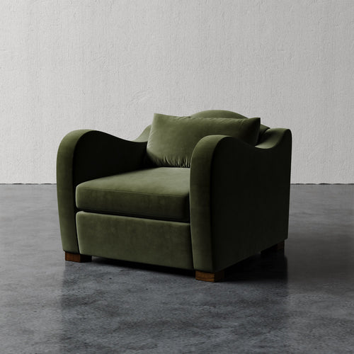 The Elodie Chair draws inspiration from the elegant curves of 1930s French design, channeling the works of Jean Royère, Pierre Chareau and Marc du Plantier. With its deep seat, soft back cushion, and swooping arms, it balances luxury and modernity, evoking the voluptuous silhouettes Royère favored. The chair's sculptural form and refined proportions reflect Art Deco influences, known for combining drama with elegance, while focusing on functional artistry. This blend of historical sophistication and contemporary comfort makes the Elodie Chair a timeless addition to any interior.