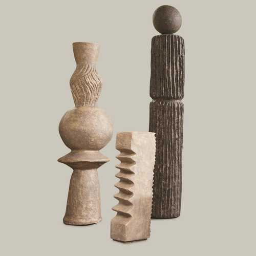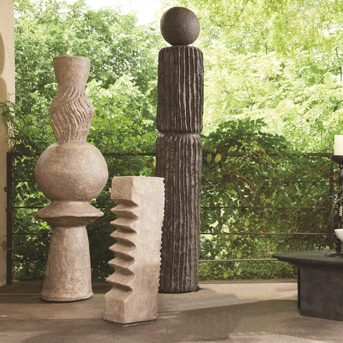 TotemThe Éloi Totem is a testament to ancient artistry and spiritual symbolism. Its meticulous hand carvings show the hand of the artisan. With its imposing presence and earthy texture, this totem becomes a captivating focal point, inviting contemplation and a deep connection to the mystique of the past. Crafted of wood and paper mache, this large-scale sculpture is truly unique.