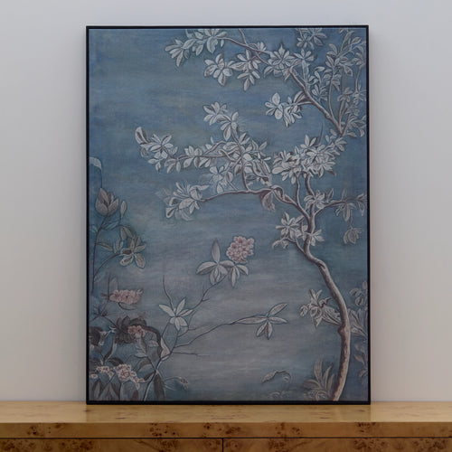 This is a portrait of nature in repose, an Impressionist whisper rather than a shout. Created on canvas with hand-applied texture, the work’s painterly depth is enhanced by its deep-profile black frame, offering a bold yet refined presentation. At 30″W x 40″H, it holds presence without overwhelming, inviting the viewer into its quiet, contemplative world.