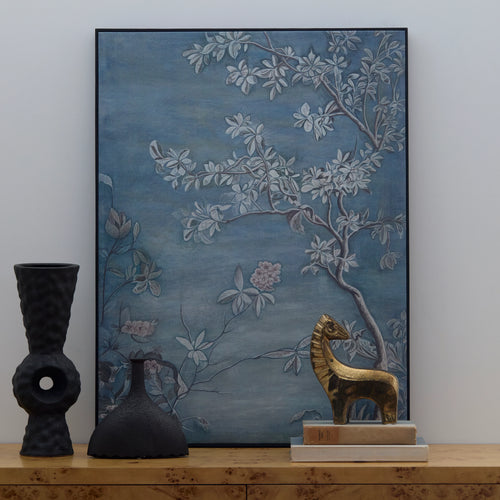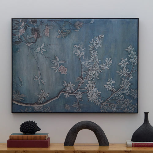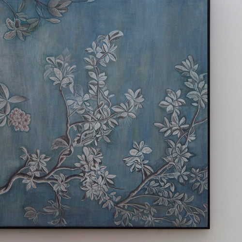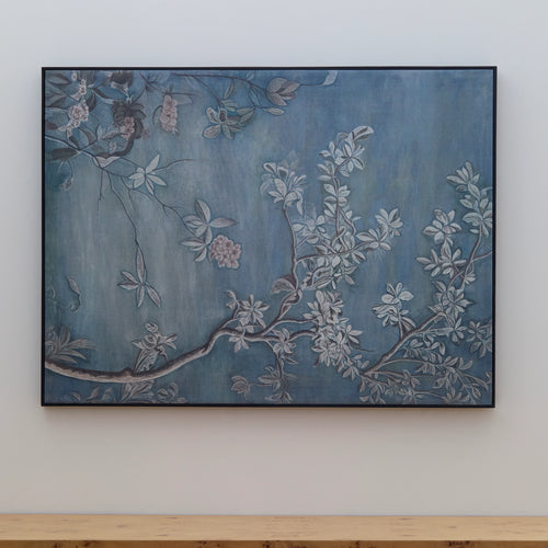 A lyrical counterpart to Émeraude Un, Émeraude Deux captures the gentle architecture of a flowering branch suspended in a tranquil, green-hued expanse. The composition is airy yet intricate, with each leaf and bloom rendered in tonal layers that shift between soft celadon and muted jade.