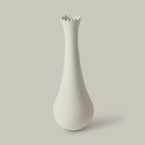 The Overscale Vases in Matte White combine scale and organic form for decorative drama. Whether alone or in a grouping, these vases are the perfect graphic elements to complement any decor. Listed from left to right as shown in the image: Deoune Vase, Pasteur Vase, Fenouil Vase, Panisse Vase, and Muguet Vase.