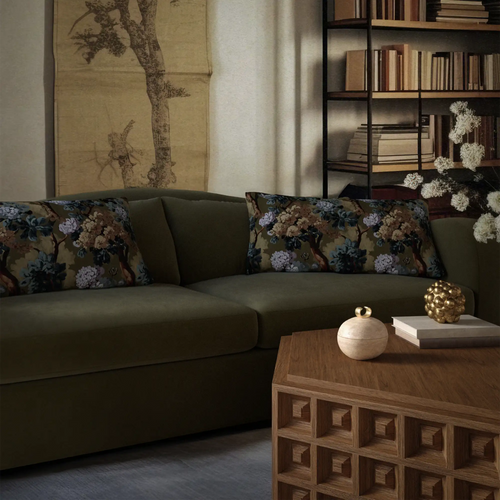 Folie Floral channels the romance of antique painting through a modern lens. Lush blossoms bloom in expressive, earthy strokes across a tonal background, evoking classical still-life compositions. Crafted in JB Martin performance velvet and made to order in the USA, this moody floral pillow adds artistic depth and quiet sophistication to any space.