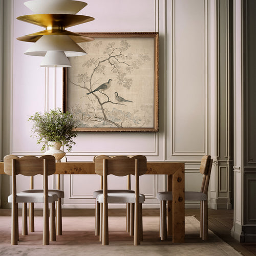 The "Forêt de Lune" limited edition fine art print series marries the beauty of the art of chinoiserie with the lush forests of South East Asia. Each print features stylized scenes of exotic branches and beautiful birds, set against misty landscapes. Rendered in charcoals, creams, and soft tonals, this collection is a masterful blend of nature and fantasy, printed, numbered and signed with a Certificate Of Authenticity for art collectors and enthusiasts of historical and artistic mastery. Own a piece of this extraordinary creation before it becomes a cherished collector's item.