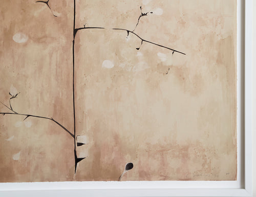 This piece is the original test print of "Pétal De Kyoto," a captivating limited release fine art print that promises to inspire art enthusiasts. This piece is meticulously crafted using gouache, charcoal, and oil stick and showcases these mediums. Each print in this exclusive limited edition collection is not only signed by the artist but also numbered and comes with a certificate of authenticity, adding an extra layer of provenance to these works of art. "Pétal De Kyoto" captures the essence of Kyoto's beauty with its delicate and abstract details, making it a must-have for collectors who appreciate the fusion of traditional and contemporary artistic techniques.