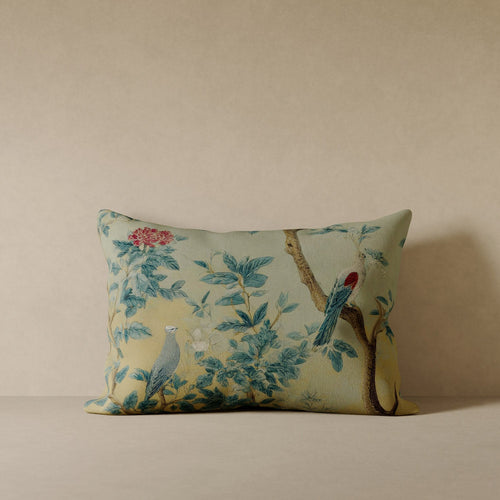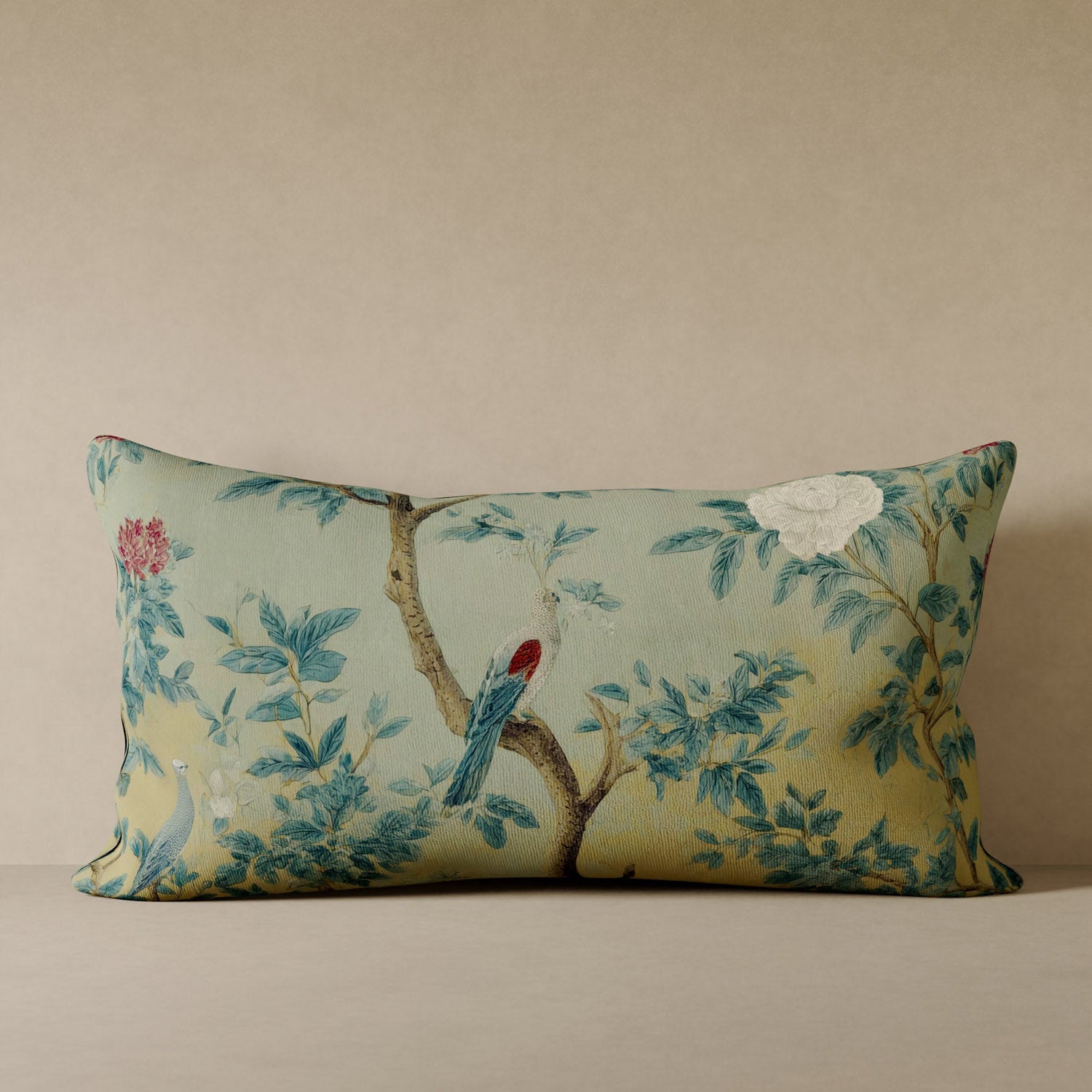 Fresco Floral captures the softly weathered charm of time-worn murals, where delicate blossoms and perched birds drift across a patinated surface. Airy and elegant, it evokes the grace of European frescoes reimagined in JB Martin performance velvet. Made to order in the USA, this decorative cushion brings lived-in artistry to refined interiors.
