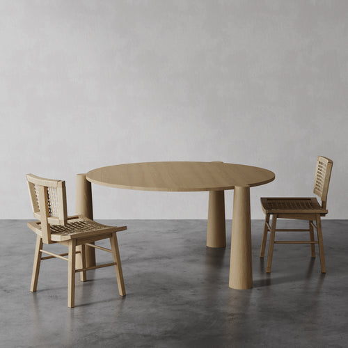 The Girard dining table, with its three over-scaled flared legs in solid wood, is a stunning centerpiece for any dining room. Its generous proportions comfortably seat up to six people, making it ideal for family gatherings and dinner parties. Crafted from high-quality Oak, this table combines elegance and durability, ensuring it remains a timeless and functional addition to your home for years to come. Perfect for those seeking a blend of modern design and robust construction, this dining table enhances any dining space with its unique and striking presence.