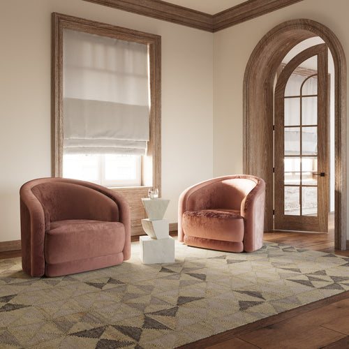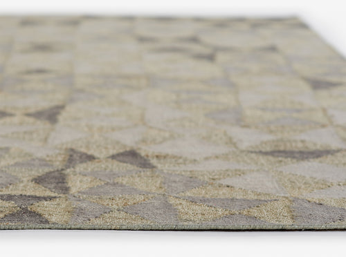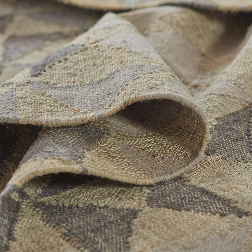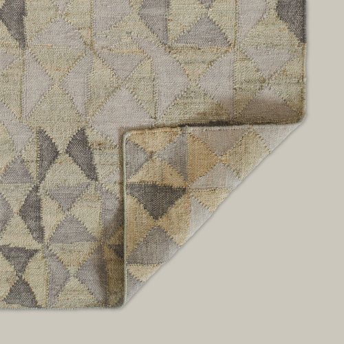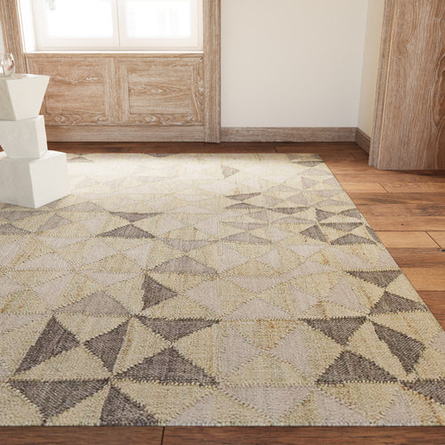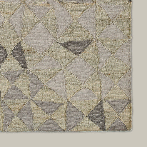 Grounded in the beauty of raw materials, the Gurara Chevrette's tones and textures are inspired by traditional African Kuba designs that feature geometric, repetitive patterns. Hand woven with a blend of jute and wool fibers, making it a strong, durable and slightly textured flat weave construction. Varying shades of contrasting neutral triangles give this rug another layer of dimensional quality that builds on its handmade appeal.
