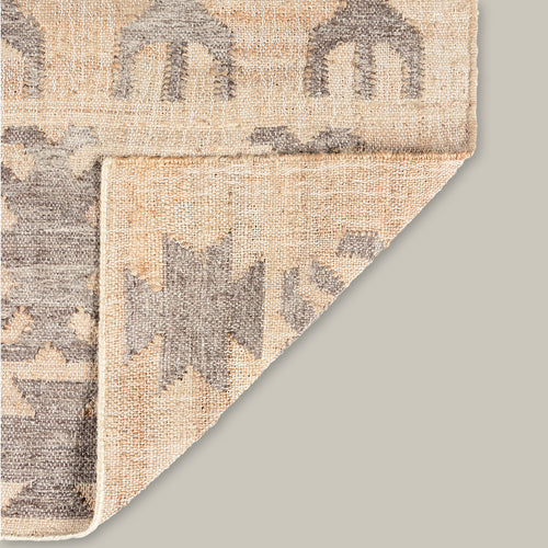 Grounded in the beauty of raw materials, the Gurara Collection’s tones and textures are inspired by Brancusi. The interwoven pattern, constructed of jute, varies in its colors and shapes but is always connected by the maker’s technique. Sculptural patterns, simple shapes, and muted, dusty colors lend a weathered air to each unique style.