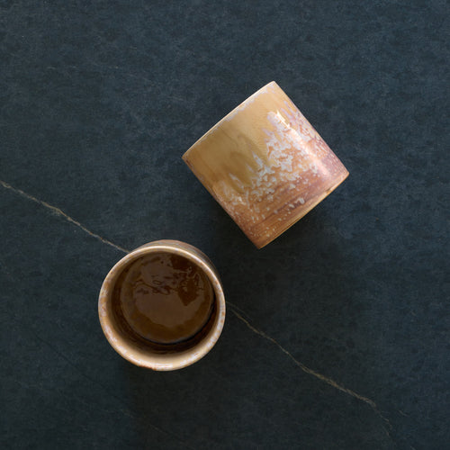 A set of four hand-finished mugs designed for morning rituals. The reactive glaze creates atmospheric gradients as the light shifts, while the stoneware body retains heat beautifully. The Hanami Stoneware Collection uses a reactive glaze, a traditional mineral-rich technique that blooms during firing and creates soft shifts in tone and texture. This process gives each piece its own distinct variation, so no two are exactly alike. Made from durable stoneware and fully dishwasher-safe.
