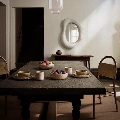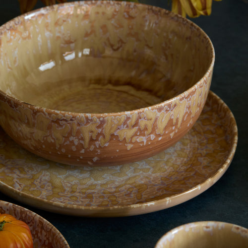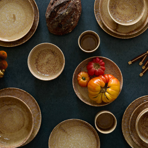 Two serving bowls that are ideal for salads, pastas, and shared dishes. The reactive glaze creates soft tonal movement across each piece, making them a focal point on the table. The Hanami Stoneware Collection uses a reactive glaze, a traditional mineral-rich technique that blooms during firing and creates soft shifts in tone and texture. This process gives each piece its own distinct variation, so no two are exactly alike. Made from durable stoneware and fully dishwasher-safe.