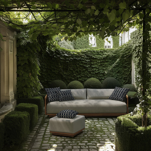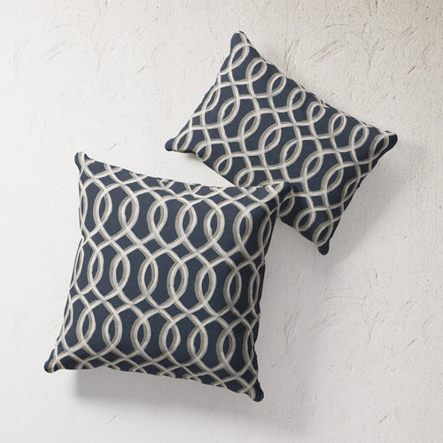 Designed in-house and inspired by fragments from our vast archives, the Navy Gatework pattern is intended to be mixed and matched for a richly layered space - whether indoor or out. Adorn a neutral sofa or chaise with our other blue hues for a tonal look. Each double-sided printed pillow is mildew proof and has UV and water resistant properties.