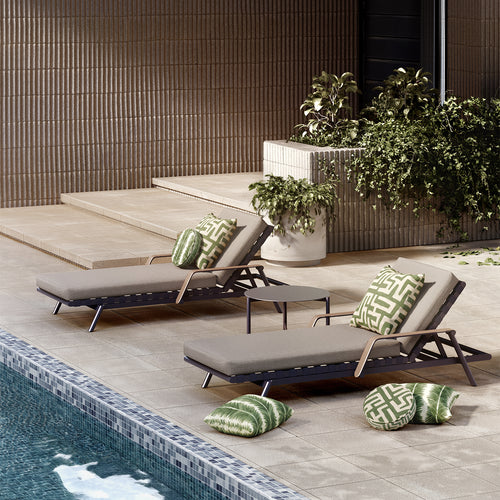 Designed in-house and inspired by fragments from our vast archives, the Kuba Cloth pattern is intended to be mixed and matched for a richly layered space - whether indoor or out. Adorn a neutral sofa or chaise with our other green hues for a tonal look. Each double-sided printed pillow is mildew proof and has UV and water resistant properties.