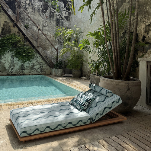 Designed in-house and inspired by fragments from our vast archives, the Teal Ikat wave pattern is intended to be mixed and matched for a richly layered space - whether indoor or out. Adorn a neutral sofa or chaise with our other blue-hued pillows for a tonal look. Each double-sided printed pillow is mildew proof and has UV and water resistant properties.