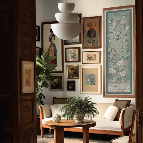 Jardin de Jaipur is an exquisite fine art print that is a mesmerizing tribute to the vintage beauty of the 1940's era. Drawing inspiration from a treasure trove of newly discovered, hand painted panels from that decade, this print captures the essence of India in that period with meticulous attention to detail. Rich, worn hues and delicate brushwork transport to a time of elegance and etiquette. The print has a gorgeous sense of nostalgia, evoking memories of a bygone era, where fashion, culture, and art in existed in perfect harmony. It serves as a timeless reminder of the enduring allure of historical aesthetics and makes for a excellent addition to any art connoisseur's collection.