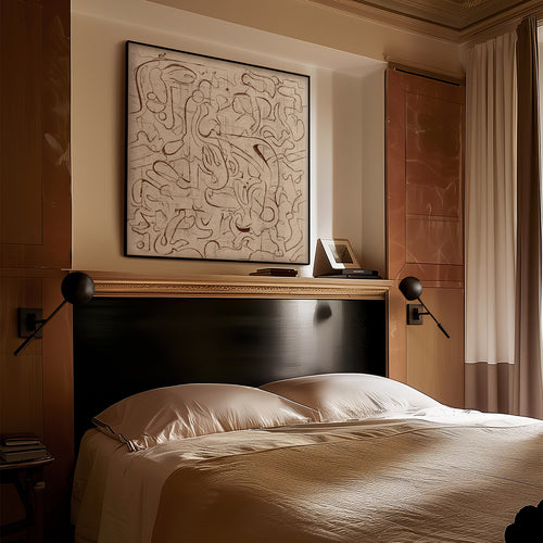 "La Ligne" is a limited edition fine art print that captivates the viewer with its gorgeous abstract linework, demonstrating the beauty of simplicity and the power of form. The print features a series of lines that dance across the space in a harmonious interplay of direction and intensity, creating a dynamic and engaging visual experience. Each stroke is deliberate and precise, yet the overall effect is one of fluid motion and organic growth, as if the lines themselves are alive and moving. The minimalist palette emphasizes the elegance of the linework, allowing the subtleties of variation in thickness and curvature to take center stage. This print creates a visual of emotion and narrative through the most fundamental elements of art, offering viewers an opportunity to explore the depths of abstraction and the beauty inherent in the line itself.