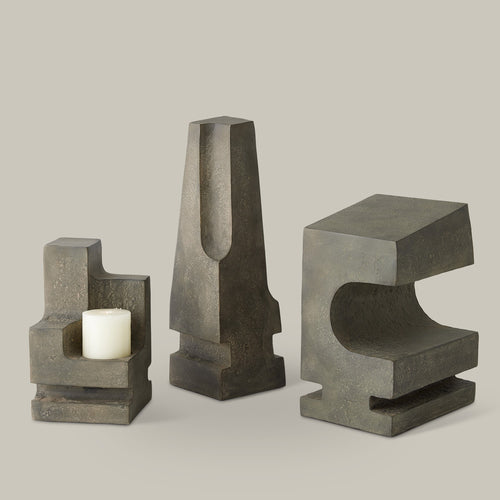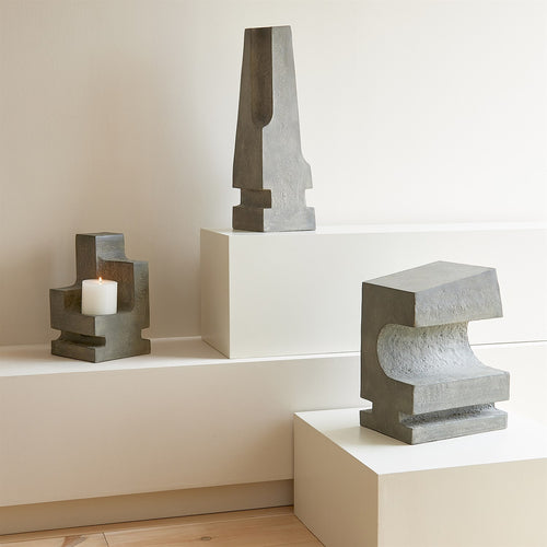 The La Structure Sculpture Collection by Lemieux et Cie channels Bauhaus-inspired geometry into bold, architectural forms. Available in both a "plaster white" or "concrete" finish, these striking pieces blend modernist rigor with sculptural depth—perfect for statement-making interiors.