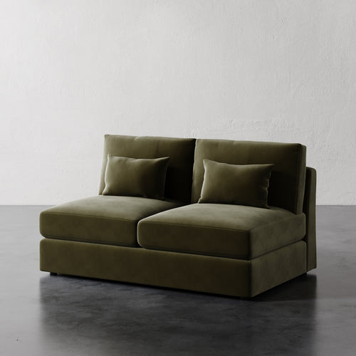 The Lacroix Armless Loveseat is handmade by skilled artisans in North Carolina.