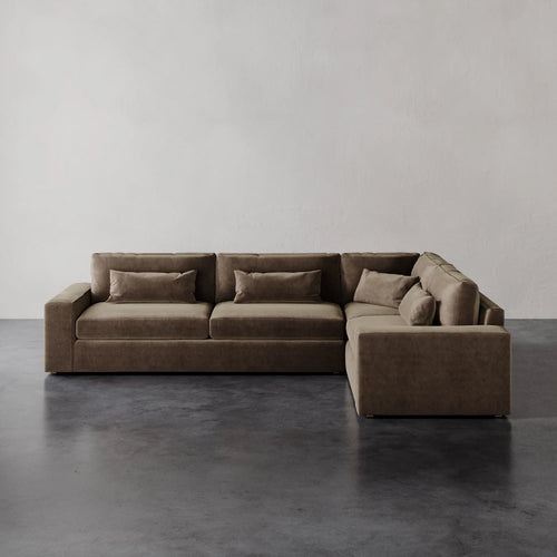 The Lacroix Collection from Lemieux et Cie is a modular masterpiece that brings timeless form and modern comfort into perfect balance. Inspired by the iconic geometry of Jean-Michel Frank, each piece is defined by clean rectilinear lines and deep, generous proportions. Designed for versatility, the collection includes multiple modular components that can be configured to create custom sectional sofas of any size or scale. With sink-into comfort and sculptural simplicity, the Lacroix Collection offers a tailored foundation for contemporary living. Bolster pillows included.