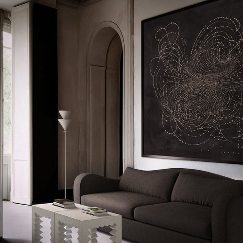 Introducing "Les Étoiles," a limited-edition fine art print from Lemieux Et Cie, inspired by the ephemeral beauty of the night sky and the ethereal glow of the northern lights. Created with gouache, chalk, and charcoal, this piece captures the interplay of light and shadow in a dance of celestial movement, evoking the quiet majesty of the cosmos.
